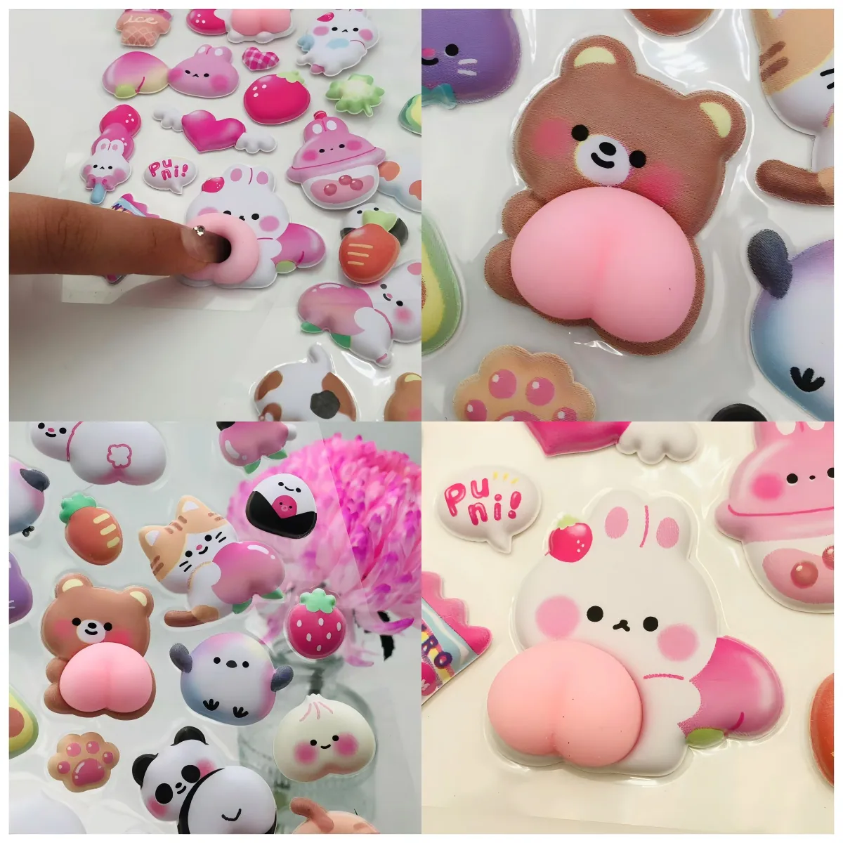 Niestandardowa naklejka 3D z kreskówkową puffy squishy tyłek dla dzieci