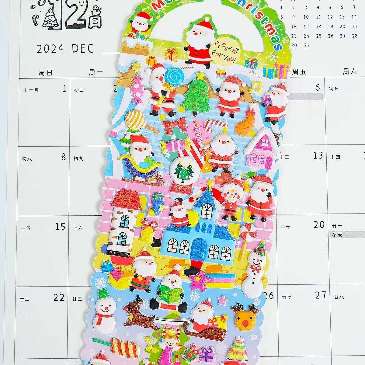 Naklejka Christmas Puff to naklejka 3D zaprojektowana przez JOJO Pack, której motywem są Święta Bożego Narodzenia. Zawiera klasyczne elementy świąteczne, takie jak Święty Mikołaj, renifery, bałwany, choinki i płatki śniegu.