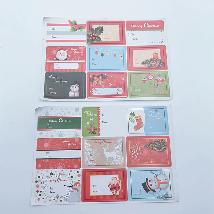 Świąteczna naklejkato dekoracyjna naklejka specjalnie zaprojektowana z okazji Świąt Bożego Narodzenia. Cświąteczne naklejkizwykle używają kolorów czerwonego, zielonego, złotego i innych świątecznych kolorów jako głównych kolorów, a wzory obejmują choinki, Świętego Mikołaja, renifery, płatki śniegu, pudełka na prezenty i inne elementy związane z Bożym Narodzeniem.Naklejki świątecznewykonane są z różnych materiałów, m.in. papieru, plastiku czy metalu, są wodoodporne i odporne na rozdarcia.