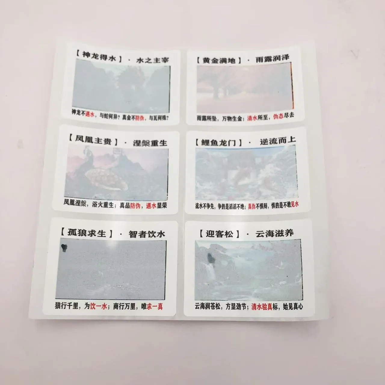 Etykiety wrażliwe na wodę zmieniające kolor wykorzystują reakcje fizyczne lub chemiczne pomiędzy atramentem a wodą, aby uwidocznić ukryte wzory lub wywołać zmianę koloru. Etykiety te, produkowane przy użyciu specjalistycznych procesów i sprzętu, zapewniają doskonałe właściwości zapobiegające podrabianiu. Po wyschnięciu niektóre typy mogą powrócić do stanu początkowego, umożliwiając wielokrotne użycie.