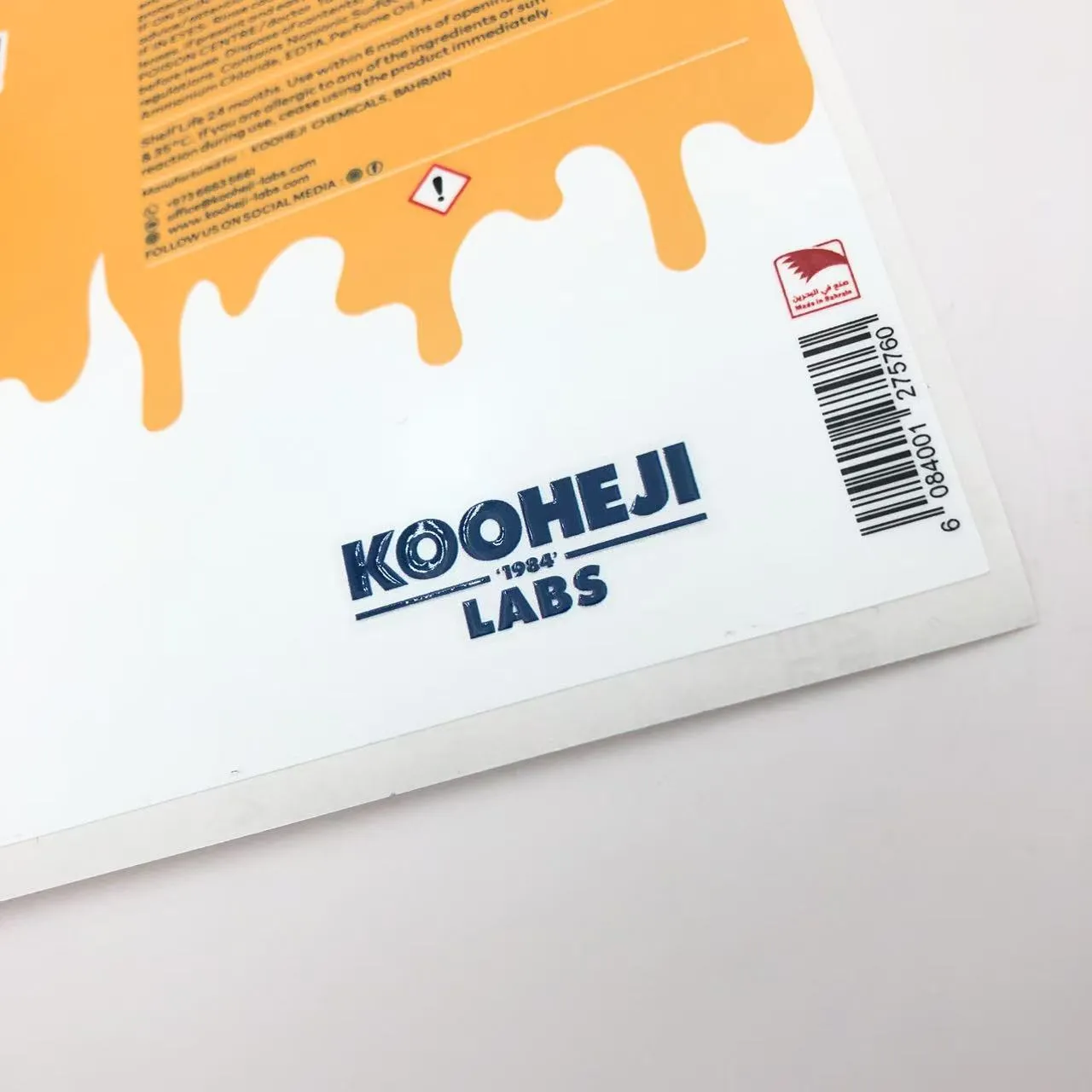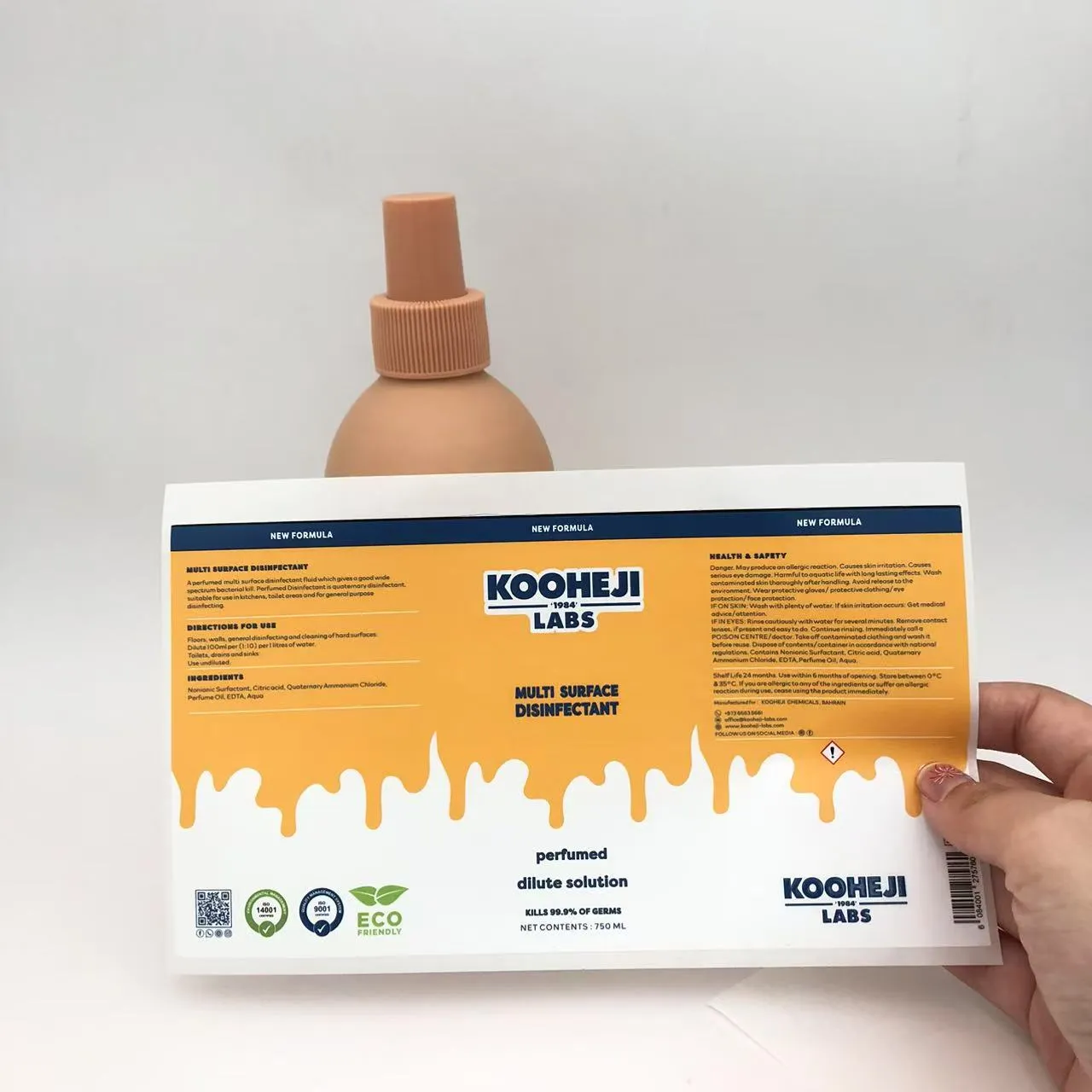 Pakiety JOJOEtykiety na opakowania butelek ze środkiem dezynfekującym są dostosowane do trudnych warunków użytkowania i są odporne na alkohol, zarysowania, wodoodporność i wysoką przyczepność. Idealnie pasuje do różnych powierzchni butelek z rozpylaczem. Efekt wytłoczenia i tekstury 3D oraz błyszczące wykończenie mogą skutecznie zwiększyć wyróżnienie Twojej marki i jakość produktu.
