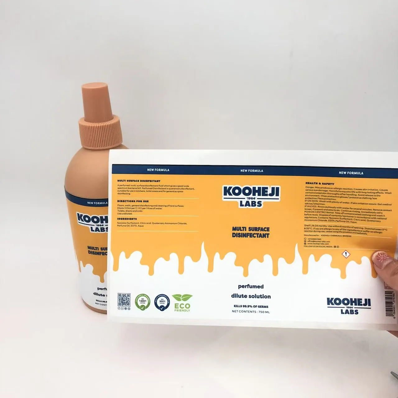 Pakiet JOJOgłęboko angażuje się w dostosowywanie etykiet do opakowań butelek ze środkami dezynfekcyjnymi, znamy wymagania materiałowe i standardy bezpieczeństwa produktów dezynfekcyjnych w medycynie, gospodarstwie domowym, handlu i przemyśle, zapewniając, że spersonalizowane etykiety w pełni dostosowują się do trudnych warunków użytkowania.