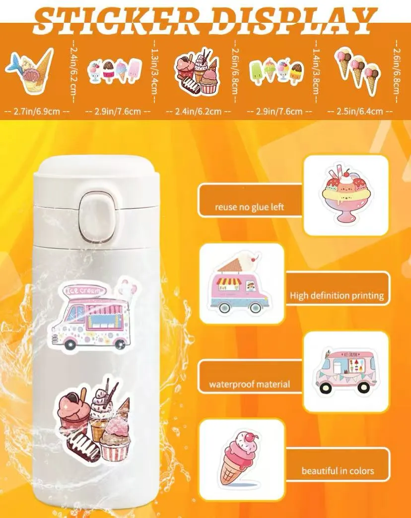 Ten produkt obejmuje 50 niezależnie zaprojektowanych naklejek lodów bez powtarzających się wzorów, zaspokajania różnorodnych potrzeb dekoracyjnych. Naklejki są wykonane z ekologicznego materiału PVC i zostały obrażane w celu oporu wodnego i odporności na zużycie, co czyni je odpowiednio do różnych scenariuszy i trwały. Klej podkładowy ma wysokiej jakości zdejmowany klej, który mocno przylega i nie pozostawia śladów po usunięciu, a wzory są drukowane z technologią wysokiej rozdzielczości, zawierającą bogate i jasne kolory, wyraźne detale, a nie łatwo blaknące z czasem.