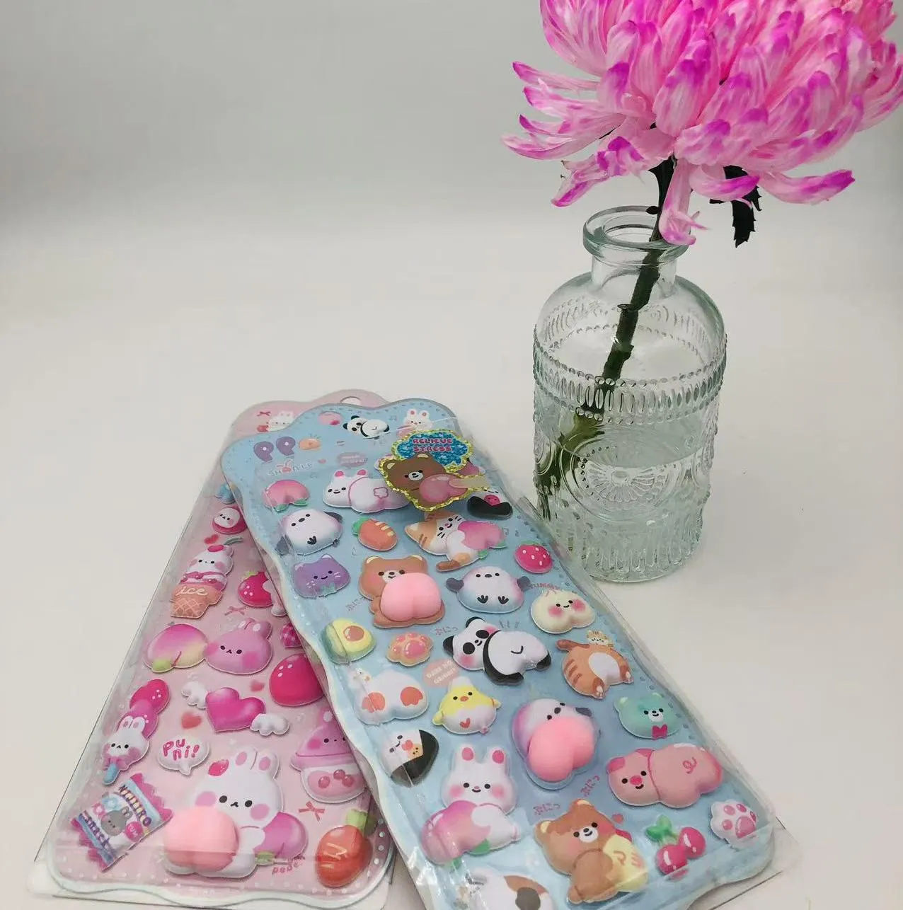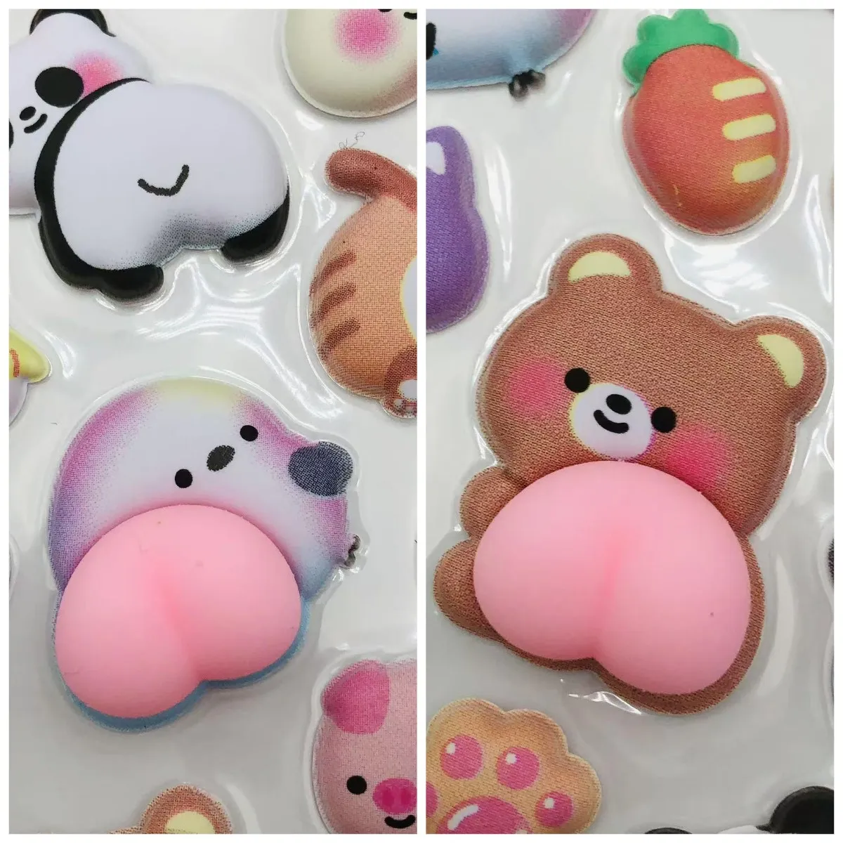Materiał o powolnym odbiciu: Te naklejki są zwykle wykonane z pianki o powolnym odbiciu, silikonu lub żelu samoprzylepnego. Kiedy je ściskasz, szturchasz lub naciskasz palcami, wgniatają się powoli, a następnie stopniowo odbijają. Ten proces jest niezwykle odprężający i kusi do ciągłego ściskania i ugniatania.