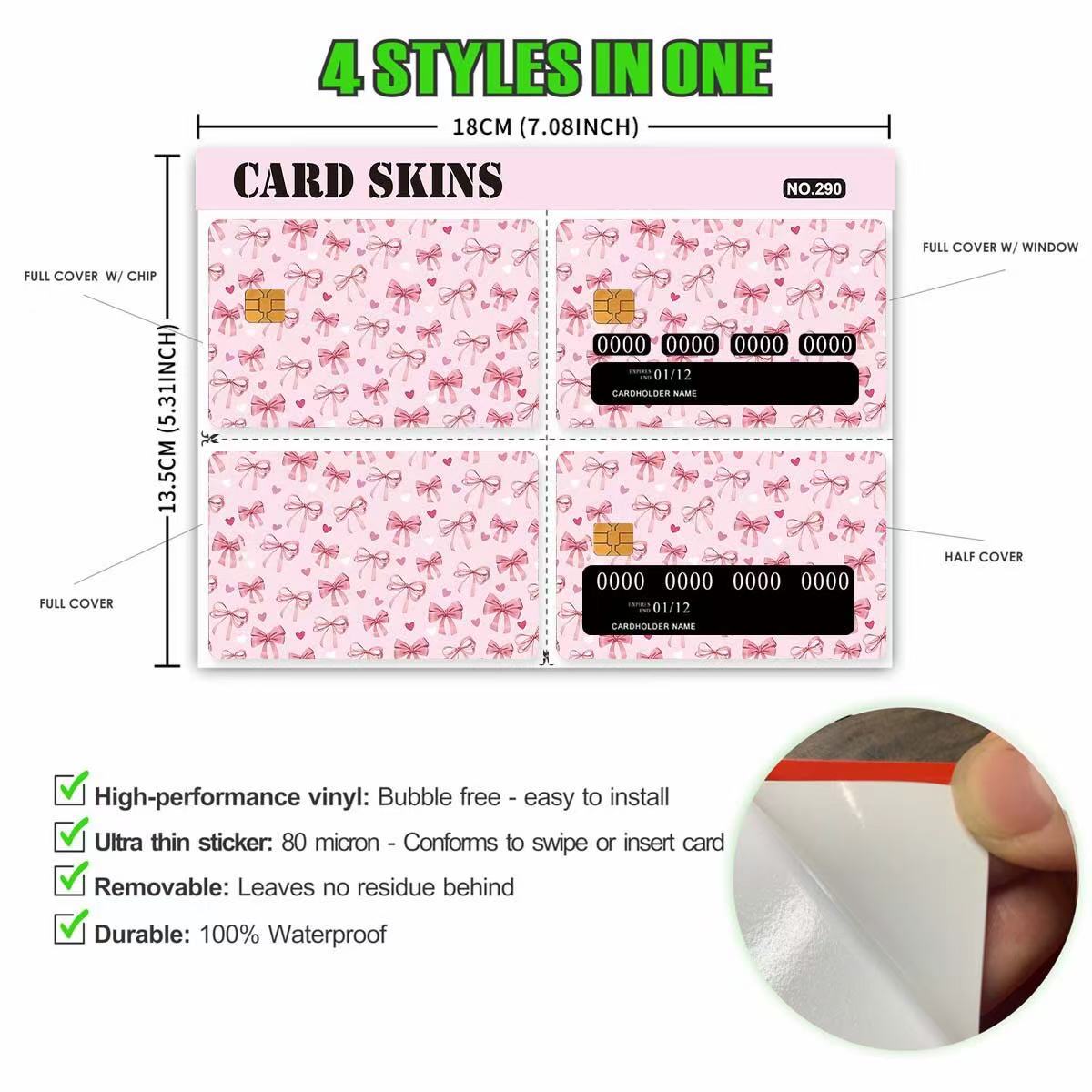 Aby zapewnić jakość produktu podczas transportu, każda naklejka na kartę kredytową jest zabezpieczona na powierzchni folią ochronną. Ta warstwa ochronna skutecznie chroni naklejki przed zarysowaniami, kurzem i innymi potencjalnymi uszkodzeniami, które mogą wystąpić w transporcie. Po otrzymaniu towaru klienci muszą jedynie zdjąć folię ochronną, aby odsłonić wyraźny i żywy wygląd naklejek kart kredytowych.