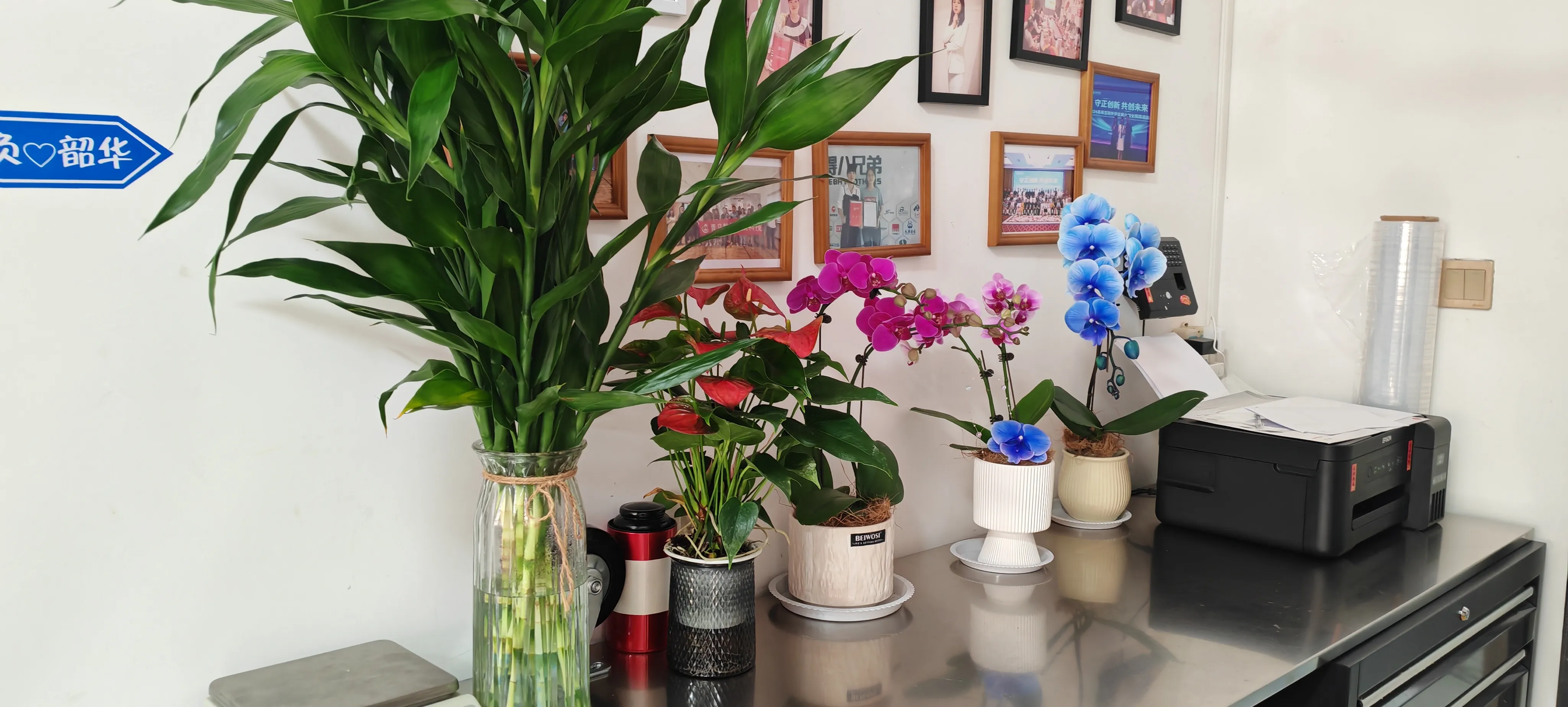 Pani Men, kierownik ds. handlu zagranicznego, powiedziała z uśmiechem: „Wcześniej otoczenie biura było czyste, ale brakowało w nim poczucia natury. Teraz, dzięki dekoracji z tych kwiatów i roślin zielonych, cała przestrzeń nabrała życia. Patrząc na zielone rośliny w przerwach w pracy, moje oczy również mogą odpocząć”. Opieka szefa sprawia, że każdy czuje ciepło firmy. Jesteśmy bardziej zmotywowani do pracy. W czasie przerw na lunch możemy także wspólnie z kolegami zająć się kwiatami i roślinami, co dostarcza mnóstwo frajdy.