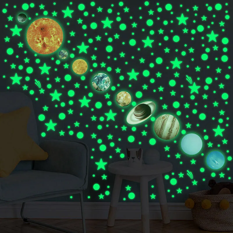 Kiedy elektrony w materiałach luminescencyjnych wracają do stanu stabilnego, uwalniają wcześniej wchłoniętą energię, której towarzyszy emisja fotonów. Te fotony są widzialnym światłem, które możemy zobaczyć. Ponieważ świetliste naklejki zawierają dużą ilość takich luminescencyjnych materiałów, pracują razem, aby stale uwalniać słabe światło, umożliwiając naklejenie w ciemności.