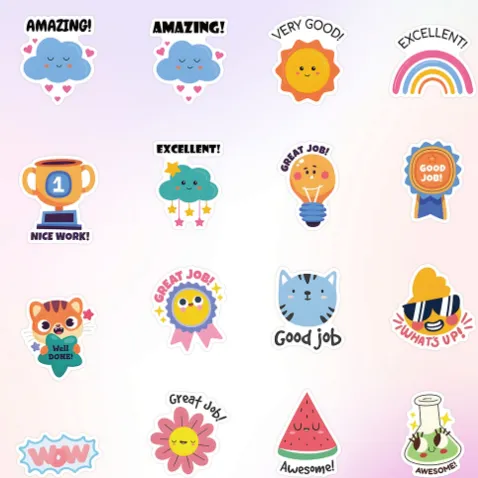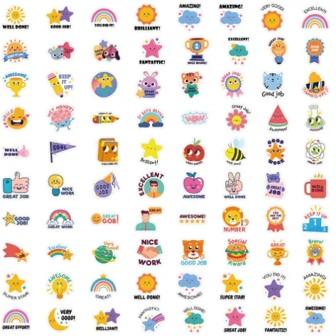 Naklejki nagradzane są czymś, na co wszystkie dzieci tęsknią w dzieciństwie! Nie lekceważ tych naklejek. Te naklejki mogą być okrągłe i małe, lub można je dostosować do innych rozmiarów i kształtów. Jednak niezależnie od ich form odgrywają bardzo znaczącą rolę w dzieciństwie dzieci! Możemy dostosować niektóre wzory, które dzieci lubią naklejki nagradzają lub słowa, które dzieci lubią słyszeć, takie jak: „Dobra robota!”, „Świetna robota!”, „Doskonała!”, „Mądry!”. To nie tylko daje dzieciom pewność siebie, ale także zachęca je do konsekwentnego zachowania dobrych nawyków.