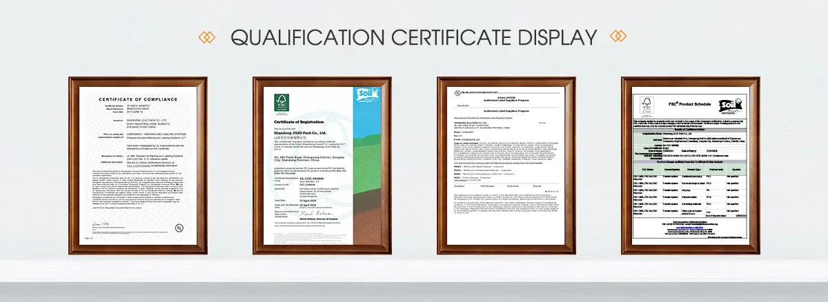 Jojo Pack to firma specjalizująca się w wysokiej jakości projektowaniu etykiet, produkcji i usługach posprzedażnych. Dzięki ponad 30 -letniemu doświadczeniu standardy produkcyjne firmy spełniają międzynarodowe wymagania. Nasze produkty są eksportowane do wielu krajów i otrzymały wysokie uznanie od klientów.