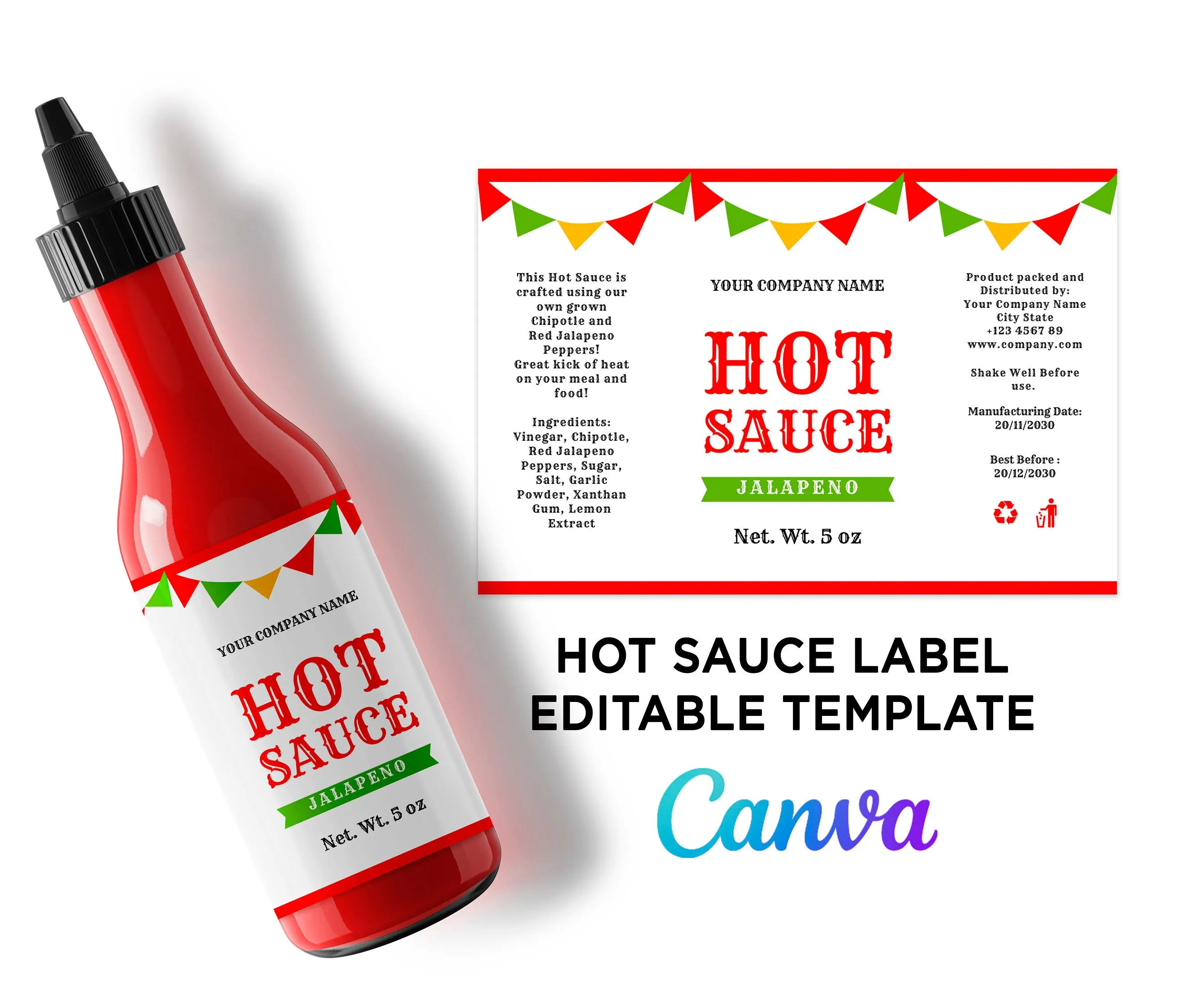 Kompleksowa etykieta butelek o sosie zawiera listę składników, okres trwałości i warunki przechowywania, umożliwiając natychmiastowy dostęp do szczegółów produktu.